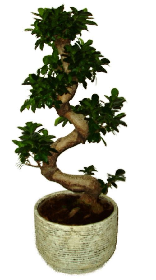 Ficusy ginseng sú výborné izbové bonsaje, ktoré nevyžadujú žiadnu starostlivosť, zálievka je veľmi sporadická raz za čas po celkovom vyschnutí. Výška izbovej bonsaje je 74 cm, vek 15 rokov.
