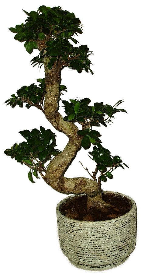 Ficusy ginseng sú výborné izbové bonsaje, ktoré nevyžadujú žiadnu starostlivosť, zálievka je veľmi sporadická raz za čas po celkovom vyschnutí. Výška izbovej bonsaje je 74 cm, vek 15 rokov.