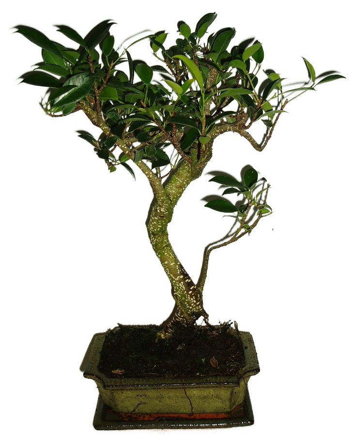 Ficus - figovník je úplne nenáročný bonsaj, ktorý nevadí aj dlhšie sucho, naopak ju vadí prelievanie. Jediné čo naozaj neznáša a na čo reaguje zhodením listov, žltnutím, opadaním (po ktorom opäť obrastie) je studená voda a prievan. Bonsaj teda zalievame vlažnou až veľmi teplou vodou a umiestňujeme ju na miesta, kde nie je zima, prievan a pod. Bonsai rastie priemerne rýchlo, čiže občasné strihanie. Úplne skvele sa nové výhonky tvarujú, takže dosiahnete naozaj akýkoľvek tvar za pomocou metód tvarovania a tvarovacieho drôtu. Ficusov je niekoľko typov, líšia sa obvykle svojimi lístkami, ich tlstotou a tvarom, avšak čo do pestovania sú všetky rovnaké. Zálievku teda vykonávame až po dôkladnom vyschnutí aj niekoľko dní.