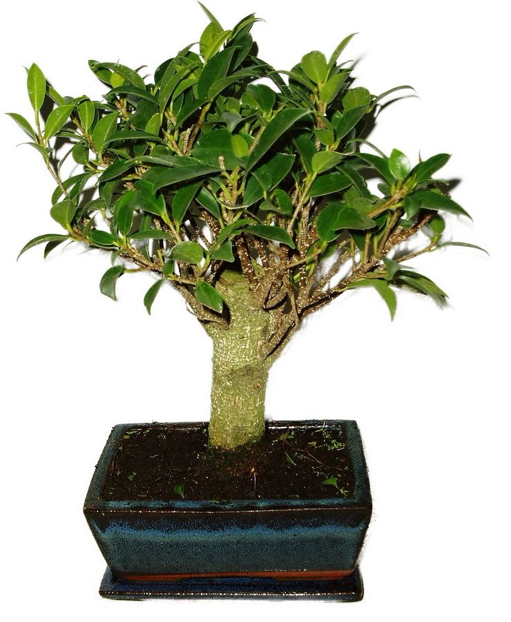 Ficus - figovník je úplne nenáročný bonsaj, ktorý nevadí aj dlhšie sucho, naopak ju vadí prelievanie. Jediné čo naozaj neznáša a na čo reaguje zhodením listov, žltnutím, opadaním (po ktorom opäť obrastie) je studená voda a prievan. Bonsaj teda zalievame vlažnou až veľmi teplou vodou a umiestňujeme ju na miesta, kde nie je zima, prievan a pod. Bonsai rastie priemerne rýchlo, čiže občasné strihanie. Úplne skvele sa nové výhonky tvarujú, takže dosiahnete naozaj akýkoľvek tvar za pomocou metód tvarovania a tvarovacieho drôtu. Ficusov je niekoľko typov, líšia sa obvykle svojimi lístkami, ich tlstotou a tvarom, avšak čo do pestovania sú všetky rovnaké. Zálievku teda vykonávame až po dôkladnom vyschnutí aj niekoľko dní.