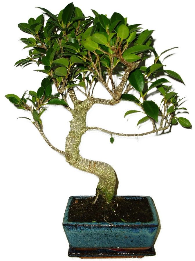 Ficus - figovník je úplne nenáročný bonsaj, ktorý nevadí aj dlhšie sucho, naopak ju vadí prelievanie. Jediné čo naozaj neznáša a na čo reaguje zhodením listov, žltnutím, opadaním (po ktorom opäť obrastie) je studená voda a prievan. Bonsaj teda zalievame vlažnou až veľmi teplou vodou a umiestňujeme ju na miesta, kde nie je zima, prievan a pod. Bonsai rastie priemerne rýchlo, čiže občasné strihanie. Úplne skvele sa nové výhonky tvarujú, takže dosiahnete naozaj akýkoľvek tvar za pomocou metód tvarovania a tvarovacieho drôtu. Ficusov je niekoľko typov, líšia sa obvykle svojimi lístkami, ich tlstotou a tvarom, avšak čo do pestovania sú všetky rovnaké. Zálievku teda vykonávame až po dôkladnom vyschnutí aj niekoľko dní.