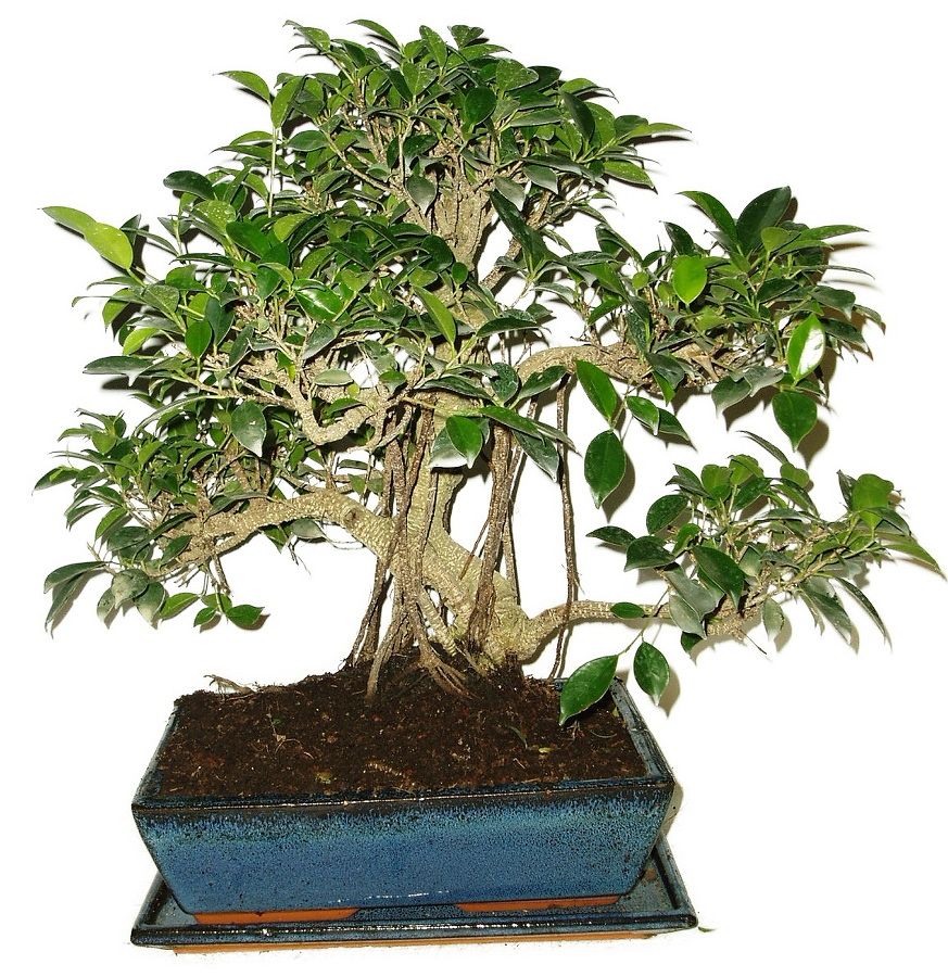 Ficus - figovník je úplne nenáročný bonsaj, ktorý nevadí aj dlhšie sucho, naopak ju vadí prelievanie. Jediné čo naozaj neznáša a na čo reaguje zhodením listov, žltnutím, opadaním (po ktorom opäť obrastie) je studená voda a prievan. Bonsaj teda zalievame vlažnou až veľmi teplou vodou a umiestňujeme ju na miesta, kde nie je zima, prievan a pod. Bonsai rastie priemerne rýchlo, čiže občasné strihanie. Úplne skvele sa nové výhonky tvarujú, takže dosiahnete naozaj akýkoľvek tvar za pomocou metód tvarovania a tvarovacieho drôtu. Ficusov je niekoľko typov, líšia sa obvykle svojimi lístkami, ich tlstotou a tvarom, avšak čo do pestovania sú všetky rovnaké. Zálievku teda vykonávame až po dôkladnom vyschnutí aj niekoľko dní.