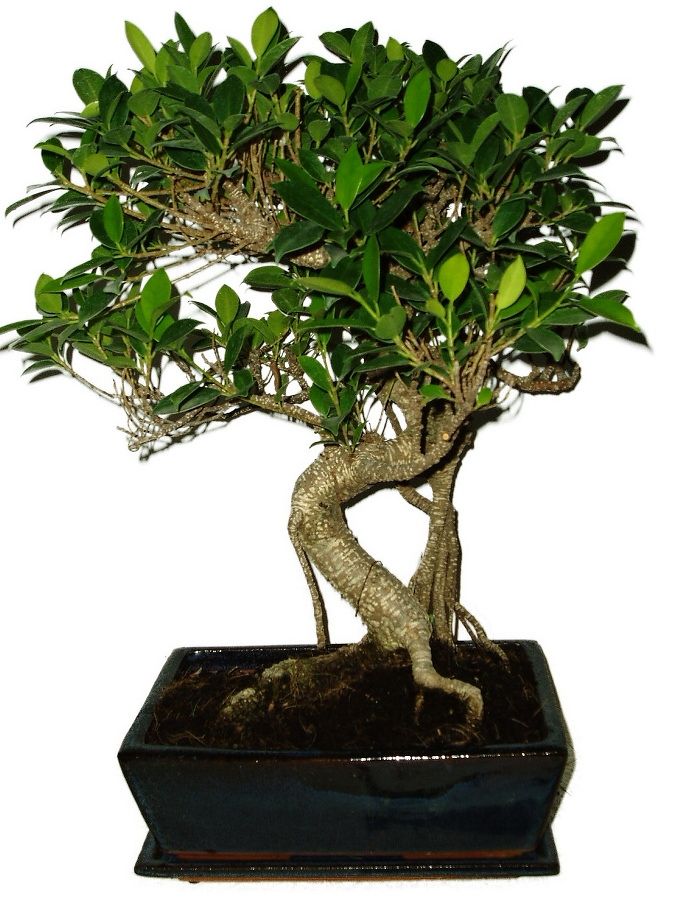 Ficus retusa - figovník je klasická izbová bonsaje o výške stromu 45 cm a veku 10 rokov. Stačí im polotieň, či šero, iba neznáša prievan a studenú vodu.
