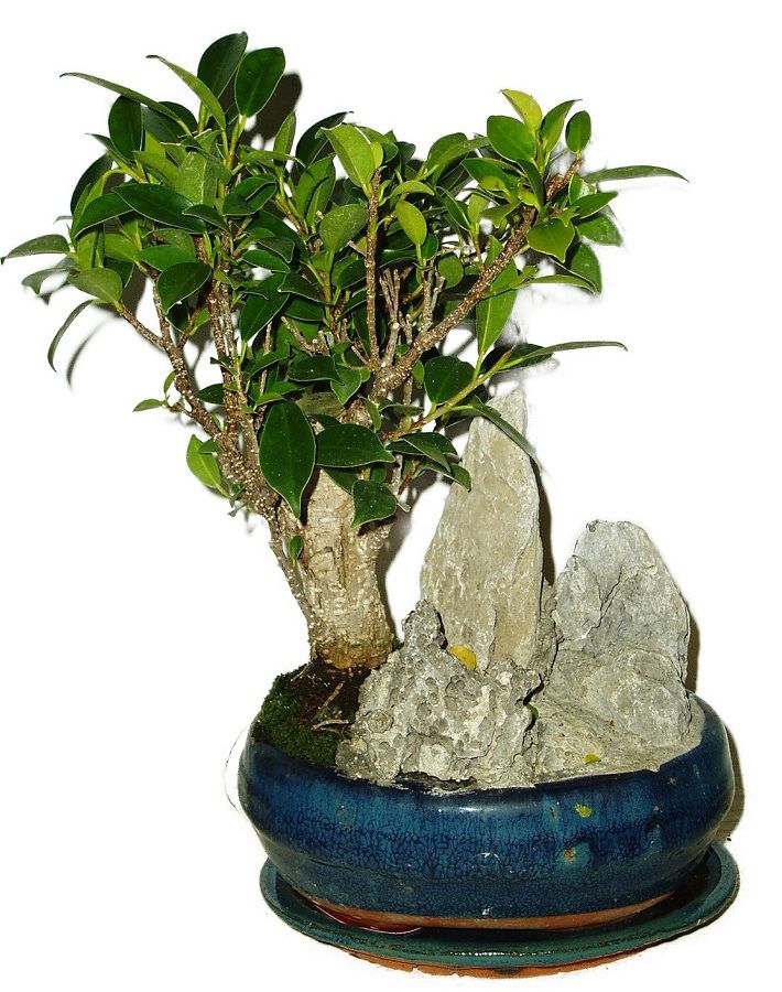 Ficus - figovník je úplne nenáročný bonsaj, ktorý nevadí aj dlhšie sucho, naopak ju vadí prelievanie. Jediné čo naozaj neznáša a na čo reaguje zhodením listov, žltnutím, opadaním (po ktorom opäť obrastie) je studená voda a prievan. Bonsaj teda zalievame vlažnou až veľmi teplou vodou a umiestňujeme ju na miesta, kde nie je zima, prievan a pod. Bonsai rastie priemerne rýchlo, čiže občasné strihanie. Úplne skvele sa nové výhonky tvarujú, takže dosiahnete naozaj akýkoľvek tvar za pomocou metód tvarovania a tvarovacieho drôtu. Ficusov je niekoľko typov, líšia sa obvykle svojimi lístkami, ich tlstotou a tvarom, avšak čo do pestovania sú všetky rovnaké. Zálievku teda vykonávame až po dôkladnom vyschnutí aj niekoľko dní.