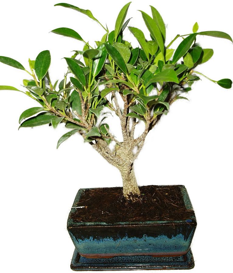 Ficus - figovník je úplne nenáročný bonsaj, ktorý nevadí aj dlhšie sucho, naopak ju vadí prelievanie. Jediné čo naozaj neznáša a na čo reaguje zhodením listov, žltnutím, opadaním (po ktorom opäť obrastie) je studená voda a prievan. Bonsaj teda zalievame vlažnou až veľmi teplou vodou a umiestňujeme ju na miesta, kde nie je zima, prievan a pod. Bonsai rastie priemerne rýchlo, čiže občasné strihanie. Úplne skvele sa nové výhonky tvarujú, takže dosiahnete naozaj akýkoľvek tvar za pomocou metód tvarovania a tvarovacieho drôtu. Ficusov je niekoľko typov, líšia sa obvykle svojimi lístkami, ich tlstotou a tvarom, avšak čo do pestovania sú všetky rovnaké. Zálievku teda vykonávame až po dôkladnom vyschnutí aj niekoľko dní.