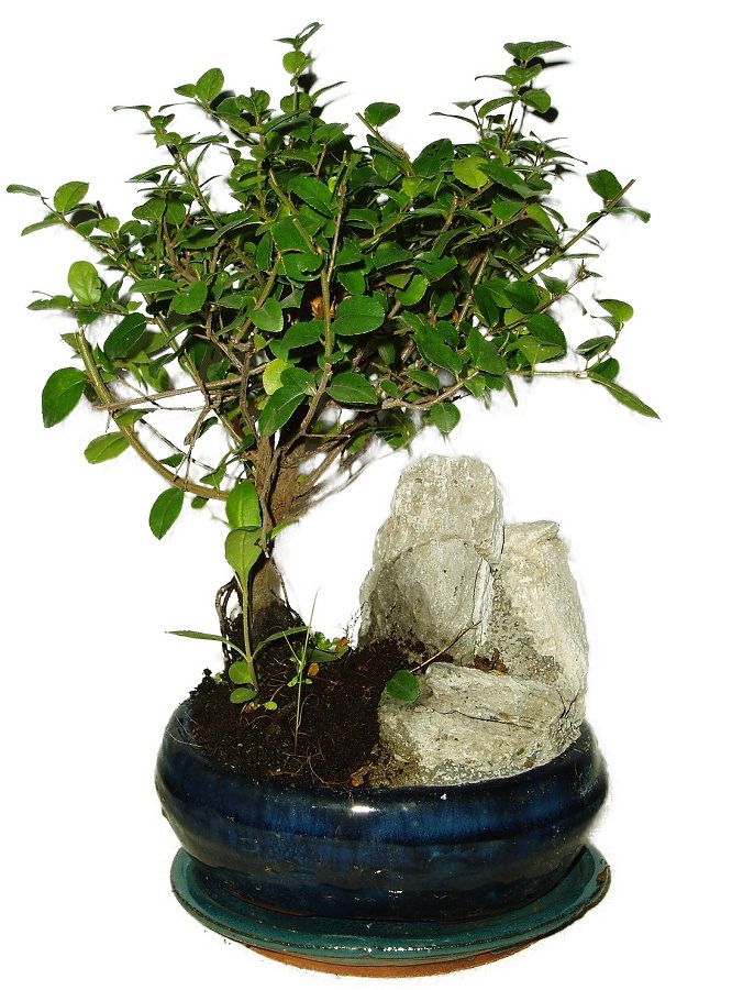 Izbová bonsai Sagerethia thea (čajová) s výškou 27 cm a vek 6 rokov. K bonsaji dostanete návod na pestovanie bonsaje zadarmo. Bonsai má krásne jemné tenké lesklé lístočky ako v lese.