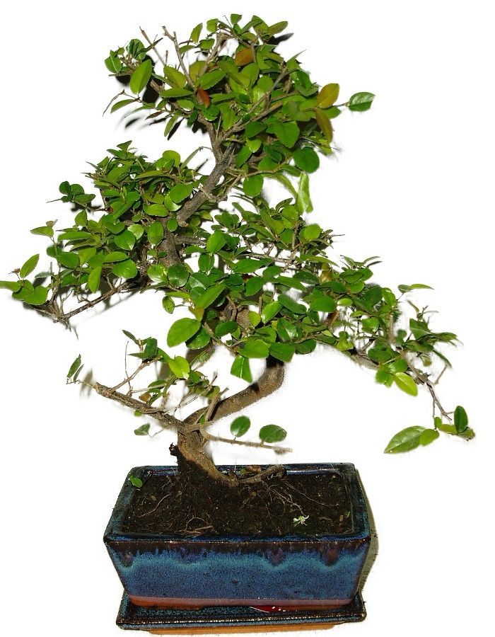 Izbová bonsai Sagerethia thea (čajová) s výškou 34 cm a vek 6 rokov. K bonsaji dostanete návod na pestovanie bonsaje zadarmo. Bonsai má krásne jemné tenké lesklé lístočky ako v lese.