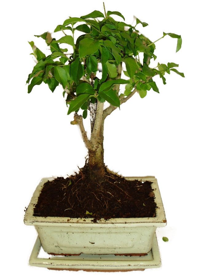 Bonsaj Ligustrum Chinensis, známa aj ako vtáčí zob čínsky, je obľúbená pre svoje lesklé zelené listy a schopnosť produkovať atraktívne biele kvety. Výška bonsaje 26 cm, vek bonsaje 5 rokov.