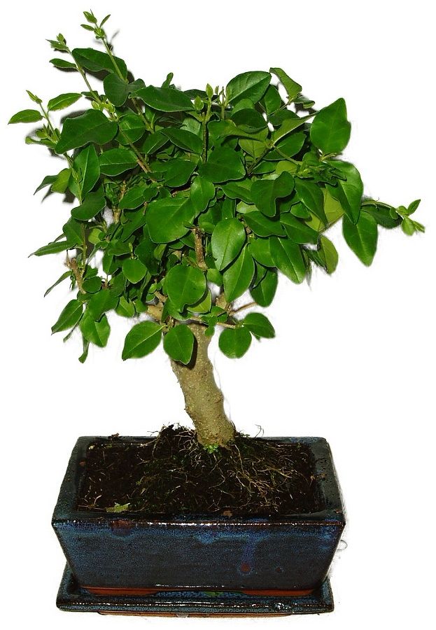 Bonsaj Ligustrum Chinensis, známa aj ako vtáčí zob čínsky, je obľúbená pre svoje lesklé zelené listy a schopnosť produkovať atraktívne biele kvety. Výška bonsaje 28 cm, výška, vek bonsaje 5 rokov.
