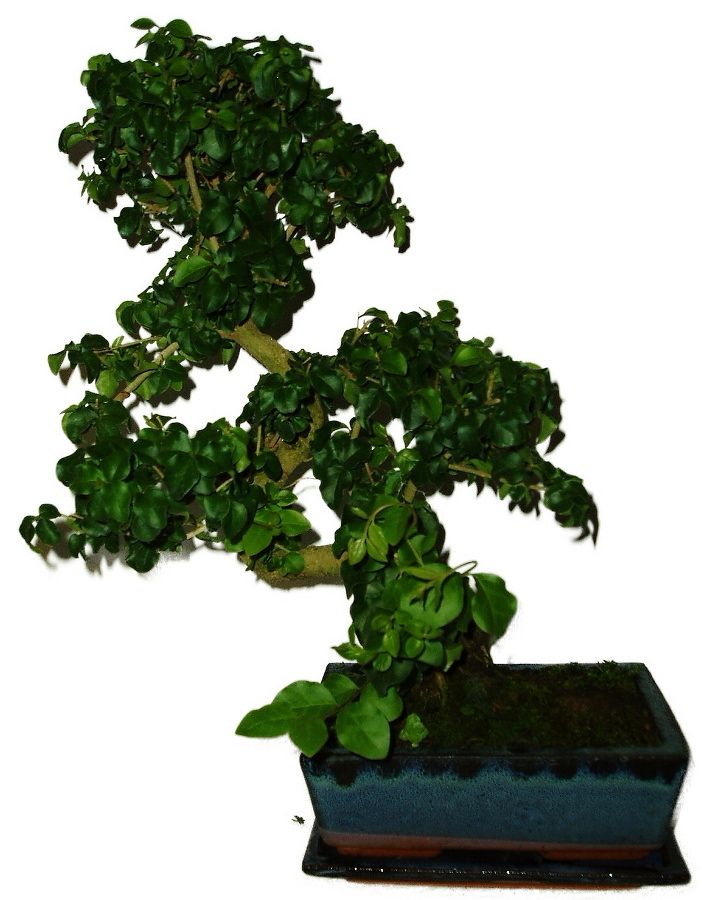 Bonsaj Ligustrum Chinensis, známa aj ako vtáčí zob čínsky, je obľúbená pre svoje lesklé zelené listy a schopnosť produkovať atraktívne biele kvety. Výška bonsaje 40 cm, vek bonsaje 8 rokov.