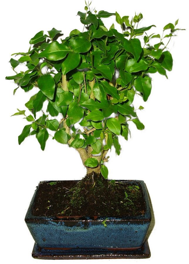 Bonsaj Ligustrum Chinensis, známa aj ako vtáčí zob čínsky, je obľúbená pre svoje lesklé zelené listy a schopnosť produkovať atraktívne biele kvety. Výška bonsaje 28 cm, vek bonsaje 5 rokov.