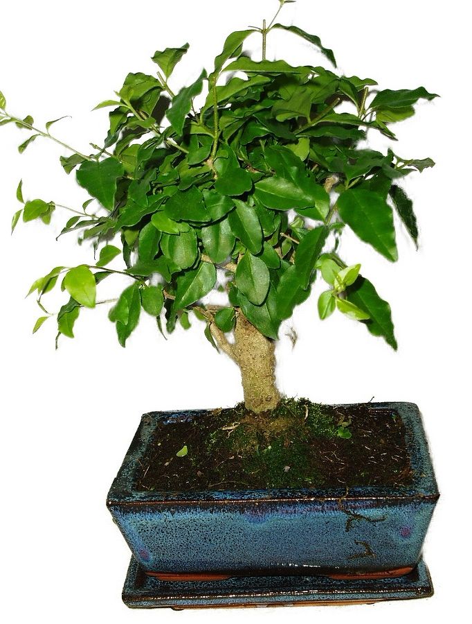 Bonsaj Ligustrum Chinensis, známa aj ako vtáčí zob čínsky, je obľúbená pre svoje lesklé zelené listy a schopnosť produkovať atraktívne biele kvety. Výška bonsaje 25 cm, vek bonsaje 5 rokov.