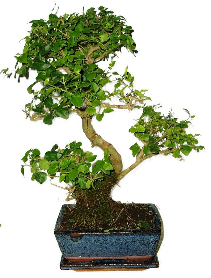 Bonsaj Ligustrum Chinensis, známa aj ako vtáčí zob čínsky, je obľúbená pre svoje lesklé zelené listy a schopnosť produkovať atraktívne biele kvety. Výška bonsaje 39 cm, vek bonsaje 6 rokov.