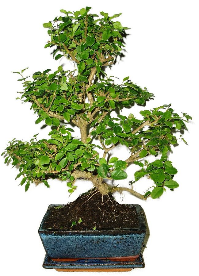 Bonsaj Ligustrum Chinensis, známa aj ako vtáčí zob čínsky, je obľúbená pre svoje lesklé zelené listy a schopnosť produkovať atraktívne biele kvety. Výška bonsaje 37 cm, vek bonsaje 6 rokov.