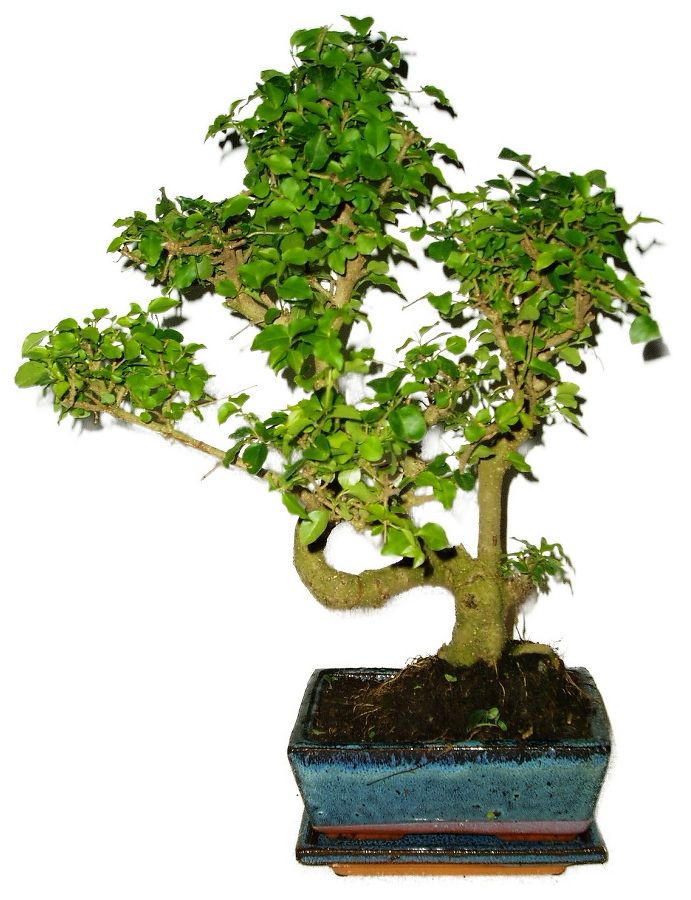 Bonsaj Ligustrum Chinensis, známa aj ako vtáčí zob čínsky, je obľúbená pre svoje lesklé zelené listy a schopnosť produkovať atraktívne biele kvety. Výška bonsaje 38 cm, vek bonsaje 6 rokov.