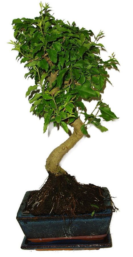 Bonsaj Ligustrum Chinensis, známa aj ako vtáčí zob čínsky, je obľúbená pre svoje lesklé zelené listy a schopnosť produkovať atraktívne biele kvety. Výška bonsaje 38 cm, vek bonsaje 6 rokov.