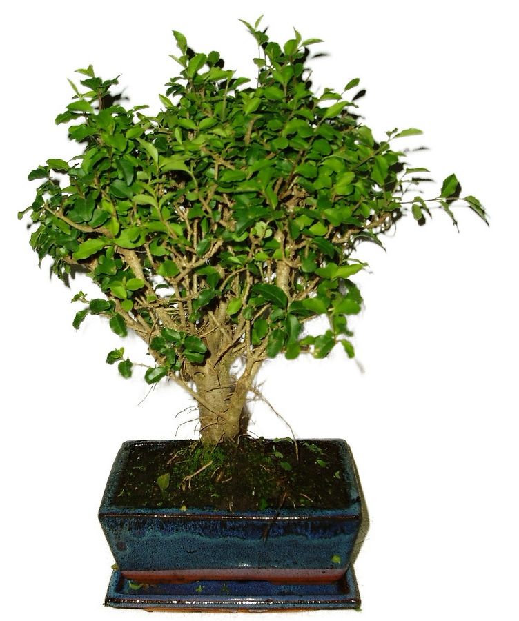 Bonsaj Ligustrum Chinensis, známa aj ako vtáčí zob čínsky, je obľúbená pre svoje lesklé zelené listy a schopnosť produkovať atraktívne biele kvety. Výška bonsaje 30 cm, vek bonsaje 5 rokov.