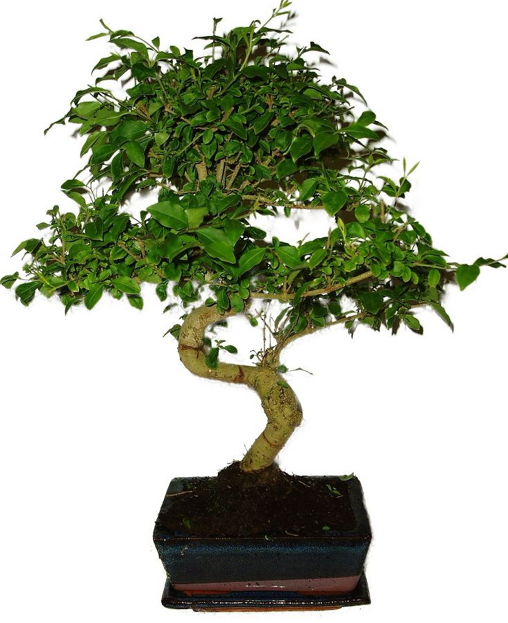 Bonsaj Ligustrum Chinensis, známa aj ako vtáčí zob čínsky, je obľúbená pre svoje lesklé zelené listy a schopnosť produkovať atraktívne biele kvety. Výška bonsaje 37 cm, vek bonsaje 6 rokov.