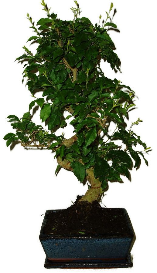 Bonsaj Ligustrum Chinensis, známa aj ako vtáčí zob čínsky, je obľúbená pre svoje lesklé zelené listy a schopnosť produkovať atraktívne biele kvety. Výška bonsaje 42 cm, vek bonsaje 6 rokov.