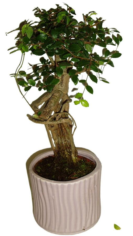 Zelkova jedna z najobľúbenejších bonsajov, pretože je nenáročná, netrpí na škodcov, vydrží veľa a veľmi sa podobá klasickému lesu. Výška izbovej bonsaje je 30 cm a vek 5 rokov.