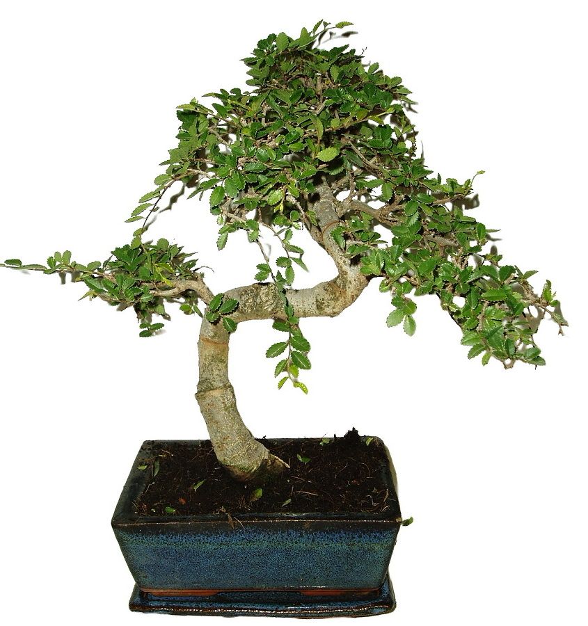 Zelkova jedna z najobľúbenejších bonsajov, pretože je nenáročná, netrpí na škodcov, vydrží veľa a veľmi sa podobá klasickému lesu. Výška izbovej bonsaje je 30 cm a vek 6 rokov.