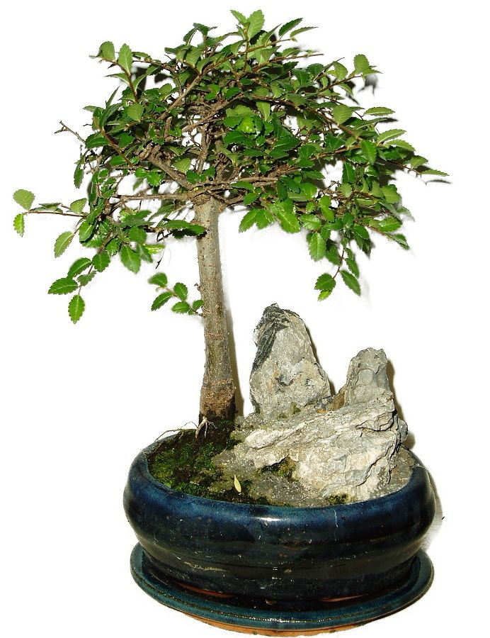 Zelkova jedna z najobľúbenejších bonsajov, pretože je nenáročná, netrpí na škodcov, vydrží veľa a veľmi sa podobá klasickému lesu. Výška izbovej bonsaje je 28 cm a vek 6 rokov.