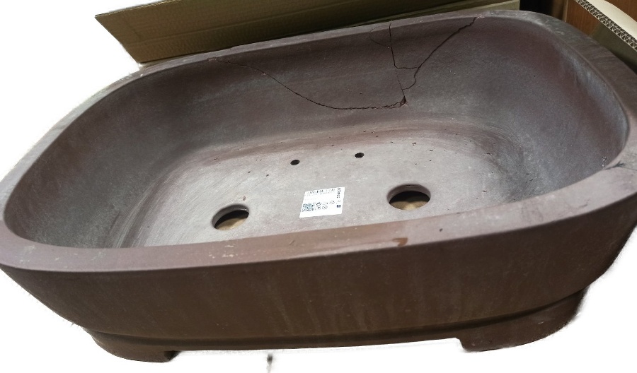 Keramická mrazuvzdorná miska na bonsaje o rozmere 62 x 45 x 17 cm. Miska bohužiaľ nárazom praskla. Je teraz zlepená. Pokiaľ Vám stačí jedna pohľadová strana v záhrade, tak ideálna za super cenu. Samozrejme aj druhá strana sa dá krásne prípadne zamaskovať.