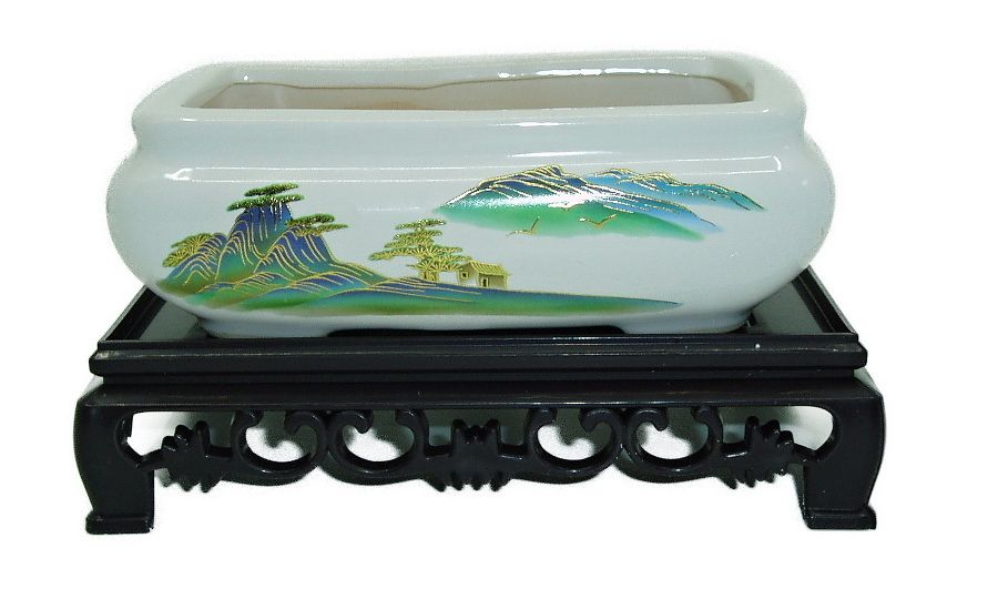 Keramická mrazuvzdorná miska na bonsaje o rozmere 13 x 9 x 14 cm. Farba biela. Plastový podstavec je súčasťou.