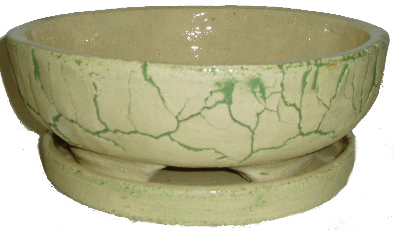 Keramická mrazuvzdorná miska na bonsaje s priemerom cca 31 cm s podmiskou. Výška bez podmisky 9,5 cm.