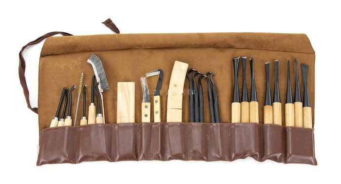 Exkluzívna kolekcia 25 profesionálnych nástrojov uložených v elegantnom koženom púzdre predstavuje to najlepšie pre náročných domácich majstrov a remeselníkov. Každý nástroj v tejto prémiovej sade je vyrobený z vysoko kvalitných materiálov, zaručujúcich dlhú životnosť a precíznu prácu. Praktické kožené puzdro nielen chráni nástroje, ale dodáva sade luxusný vzhľad a zaisťuje ľahkú prenosnosť. Táto sada je ideálnou voľbou pre všetkých, ktorí ocenia špičkovú kvalitu a profesionálne spracovanie svojich pracovných nástrojov. Investícia do kvality, ktorá sa oplatí.