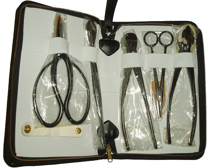 Exkluzívna kolekcia piatich profesionálnych nástrojov pre starostlivosť o bonsaje, uložená v elegantnom koženom puzdre. Každý nástroj v tejto prémiovej sade je vyrobený s dôrazom na precíznosť a dlhú životnosť, umožňujúci dokonalú starostlivosť o vaše vzácne bonsaje. luxusný vzhľad a zaisťuje ľahkú prenosnosť. Táto sada predstavuje ideálnu voľbu pre všetkých milovníkov bonsajov, ktorí ocenia. špičkovú kvalitu a profesionálne spracovanie svojich nástrojov. Investícia do kvality, ktorá sa prejaví na zdraví a kráse vašich bonsajov.