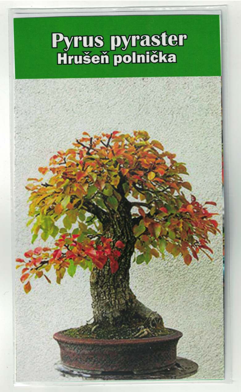 Semená si môžete zakúpiť samostatne, alebo pridať k sade na pestovanie. Počet semienok v balení - 10 kusov. Hrušeň planá alebo poľnička je pre svoju dlhovekosť a hrubú popraskanú borku veľmi vhodnou rastlinou pre bonsaje. Na jar bohato kvitne bielymi až 3 cm veľkými kvetmi a na jeseň sa malé okrúhle eliptické listy sfarbujú do žiarivých oranžových odtieňov. Pôsobivé sú bankovité až guľovité plody na dlhších stopkách.