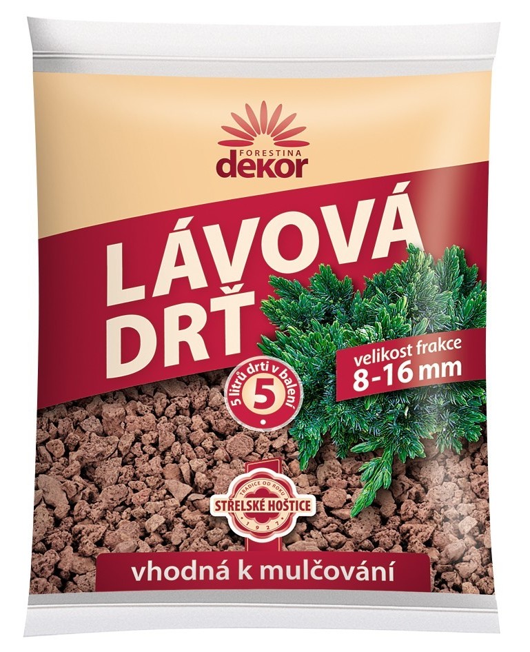 Forestina Lavová drvina 8-16 mm 5 l - prírodný dekoratívny a funkčný materiál z kvalitnej sopečnej lávy, ktorý spája estetiku s praktickým využitím v záhrade aj interiéri. Vhodná ako dekoratívny mulč do nádob, záhonov a hrantíkov.