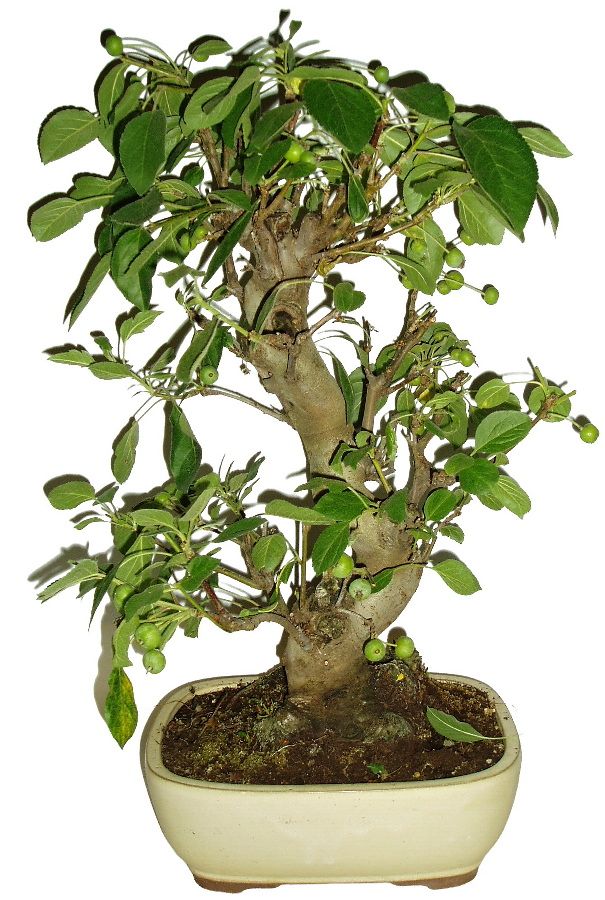 Malus - krásna čerešňoplodá jabloň, ideálna do všetkých záhrad, kde je život. Záhradu obohatí svojim krásnym kvetom a plodom. Plody sú výrazne červené. Pri nedostatočnej zálievke zvesia listy. Hnojenie dvakrát do mesiaca. Jednoducho sa tvarujú nové výhonky, než zdrevnatie. Pokiaľ máte radi farby a pekné záhrady originálne, neváhajte. Pohľad je vždy úchvatný na plodiaci bonsai.