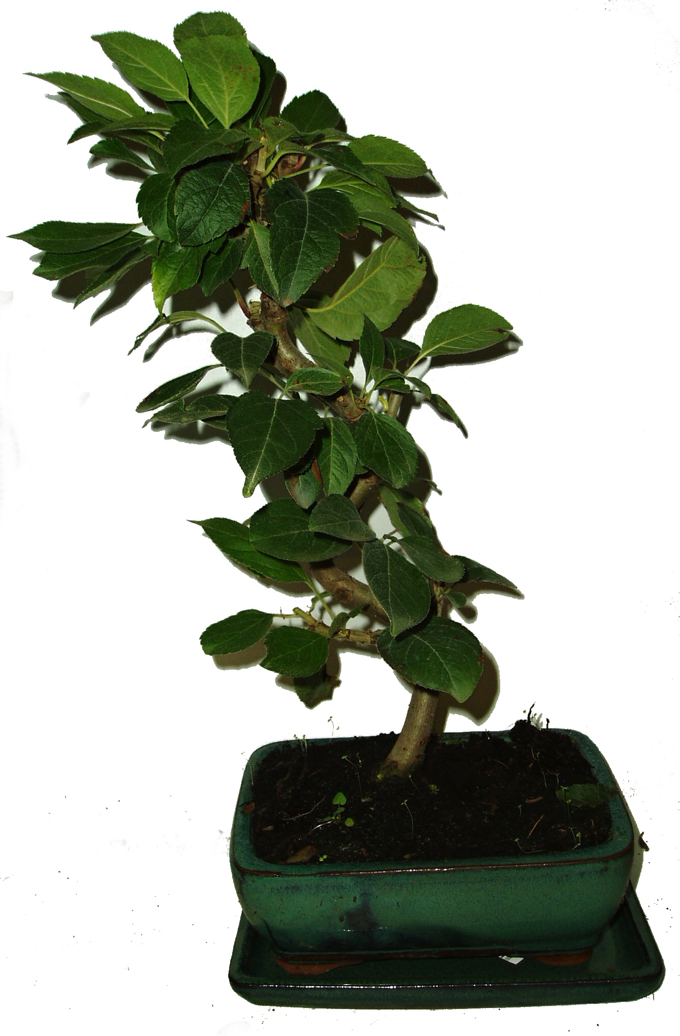Výška bonsaje 36 cm a vek 7 rokov. Jabloň je nádherná kvitnúce a plodiace bonsai. Ohromuje svojim kvetenstvom a krásnymi červenými plodmi.