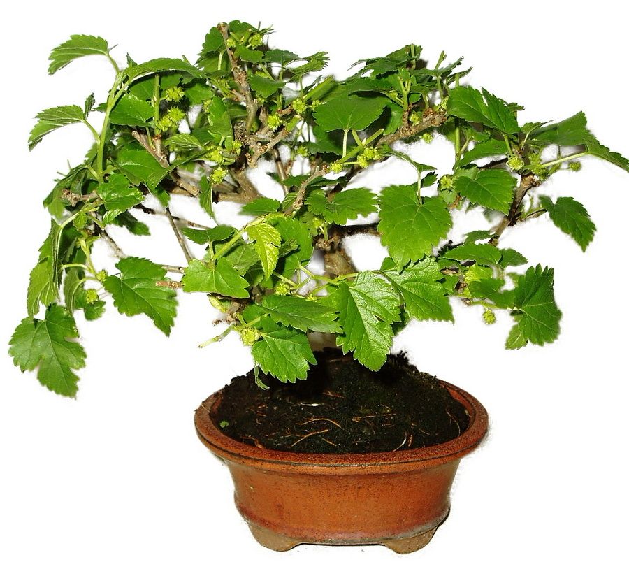 Morušovník je bonsai, ktorá pekne kvitne, následne plodé moruše, ktoré s láskou napríklad vtáky ozobávajú. Výška bonsaje 20 cm a vek bonsaje 7 rokov.