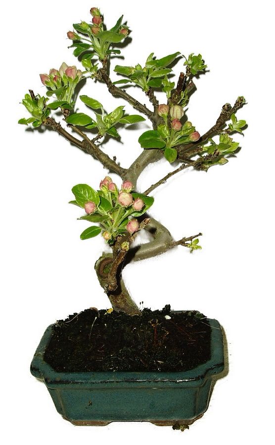 Malus - krásna čerešňoplodá jabloň, ideálna do všetkých záhrad, kde je život. Záhradu obohatí svojim krásnym kvetom a plodom. Plody sú výrazne červené. Pri nedostatočnej zálievke zvesia listy. Hnojenie dvakrát do mesiaca. Jednoducho sa tvarujú nové výhonky, než zdrevnatie. Pokiaľ máte radi farby a pekné záhrady originálne, neváhajte. Pohľad je vždy úchvatný na plodiaci bonsai.