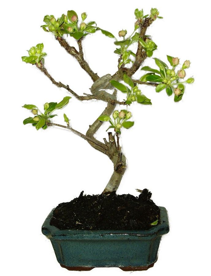 Malus - krásna čerešňoplodá jabloň, ideálna do všetkých záhrad, kde je život. Záhradu obohatí svojim krásnym kvetom a plodom. Plody sú výrazne červené. Pri nedostatočnej zálievke zvesia listy. Hnojenie dvakrát do mesiaca. Jednoducho sa tvarujú nové výhonky, než zdrevnatie. Pokiaľ máte radi farby a pekné záhrady originálne, neváhajte. Pohľad je vždy úchvatný na plodiaci bonsai.